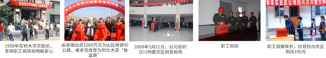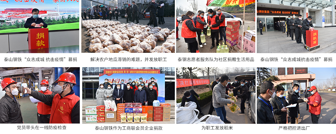 1999年3月泰山鋼鐵積極響應(yīng)全國號召向新疆貧困地區(qū)捐贈共計(jì)5000件保暖衣物;2001年3月在市總工會發(fā)起的為患白血病女學(xué)生支斐斐捐款26600余元;同年12月又向萊蕪市社會救助工作領(lǐng)導(dǎo)小組捐助單衣3290件、棉衣3000件;2012年2月向市教育局捐助貧困生52385元;2003年1月在萊蕪抗旱救災(zāi)中捐款81930元;2004年5月在全省慈心一日活動中捐款10萬元;2005年1月向海嘯災(zāi)區(qū)捐款66200元,同年6月又在全市慈心一日活動中捐款86800元;2006年11月在全市送溫暖、獻(xiàn)愛心活動中捐款86300元;2007年4月在全市敬英雄愛心獻(xiàn)功臣、修建萊蕪戰(zhàn)役紀(jì)念館活動中捐款18萬元;2008年5月汶川發(fā)生強(qiáng)烈地震,泰山鋼鐵踴躍伸出之手奉獻(xiàn)愛心,支援抗震救災(zāi),累計(jì)捐款120萬元;在2009年7月份全市慈心一日活動中捐款164351元;2010年4月玉樹地區(qū)發(fā)生地震,泰山鋼鐵積極響應(yīng)全國號召,在第一時間向震區(qū)捐款55萬元;在時下疫情期間捐助100萬元物資,三次組織職工捐款……長期以來,泰山鋼鐵為社會慈善公益事業(yè)、各類災(zāi)難捐款累計(jì)達(dá)1.5億元,做出了突出貢獻(xiàn),樹立了良好口碑。