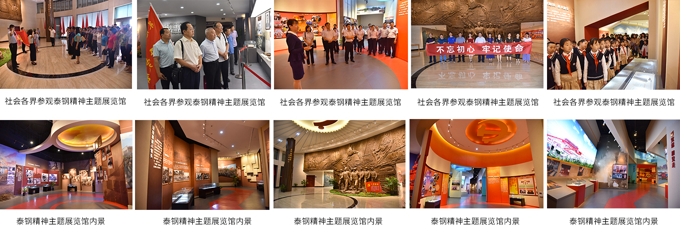 2018年,泰山鋼鐵高起點(diǎn)規(guī)劃、高標(biāo)準(zhǔn)建設(shè)了泰鋼精神主題展覽館,展示了泰山鋼鐵用黨建引領(lǐng)企業(yè)發(fā)展的奮斗歷程,與時俱進(jìn)、改革創(chuàng)新、艱苦奮斗、擔(dān)當(dāng)奉獻(xiàn)的精神。建成以來,相關(guān)政府機(jī)關(guān)及社會團(tuán)體紛紛前來開展主題黨日活動,成為傳承紅色基因、汲取信仰力量、淬煉堅(jiān)強(qiáng)黨性的學(xué)校,被授予“山東省直機(jī)關(guān)黨性教育基地”。特別是在全國上下開展“不忘初心、牢記使命”主題教育活動期間,展館連續(xù)接待180余場次、2.2萬多人前來參觀學(xué)習(xí),前來參觀學(xué)習(xí)的黨員群眾紛紛表示深受教育,很有收獲,既堅(jiān)定信仰又激發(fā)干勁。